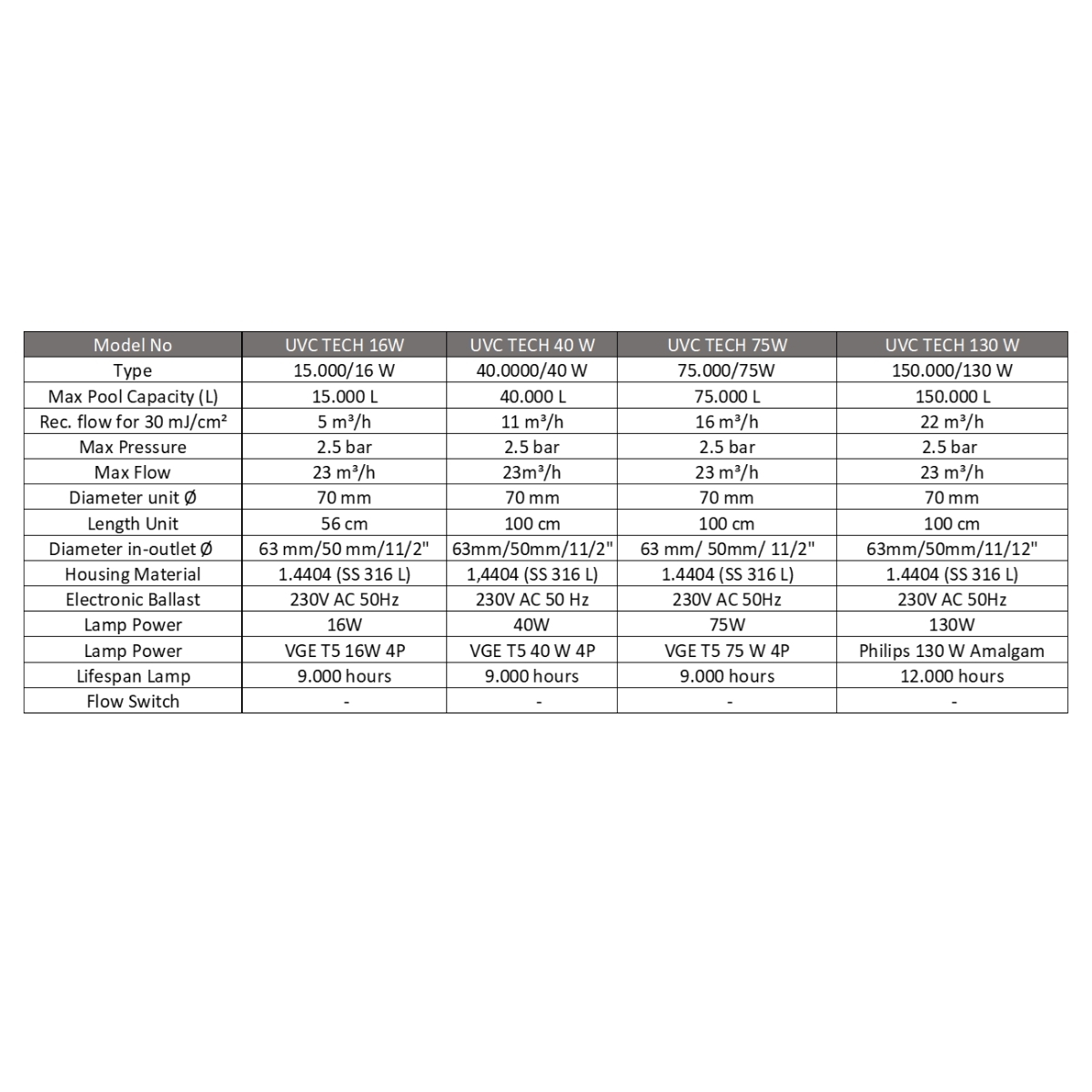 Generates UV-C radiation with a wavelength of 253.7 nm, ensuring a lethal effect on bacteria (including Legionella). Specially developed by Philips, it is ideal for water temperatures up to 40°C. UV-C radiation neutralizes bacteria, viruses, and other primitive organisms and stops them from multiplying. Ensures clean, fresh, and clear pool or spa water in an efficient and environmentally friendly manner.